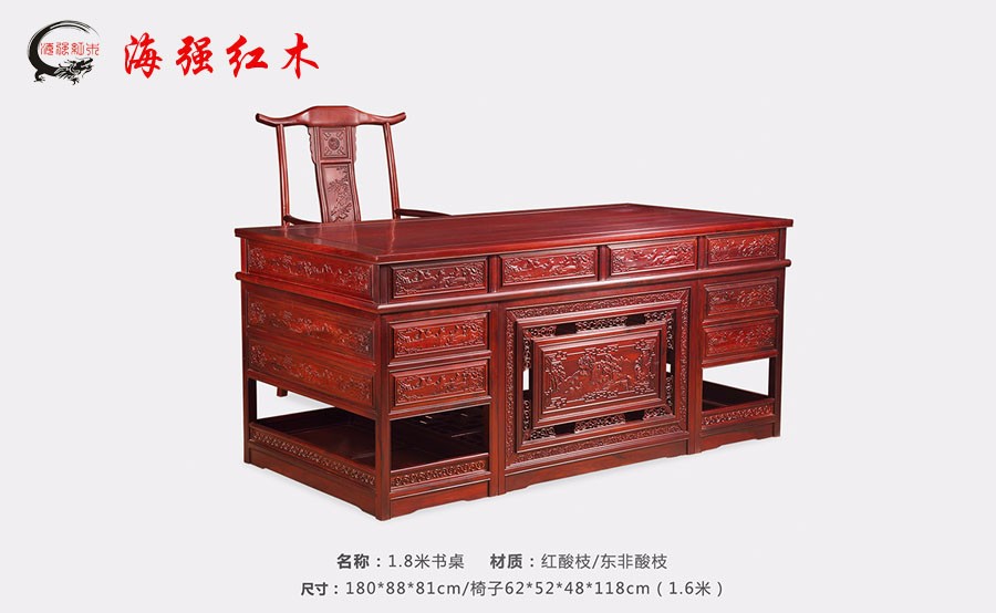 名稱(chēng) : 1 . 8 米書(shū)桌材質(zhì):紅酸枝 l 東非酸枝
