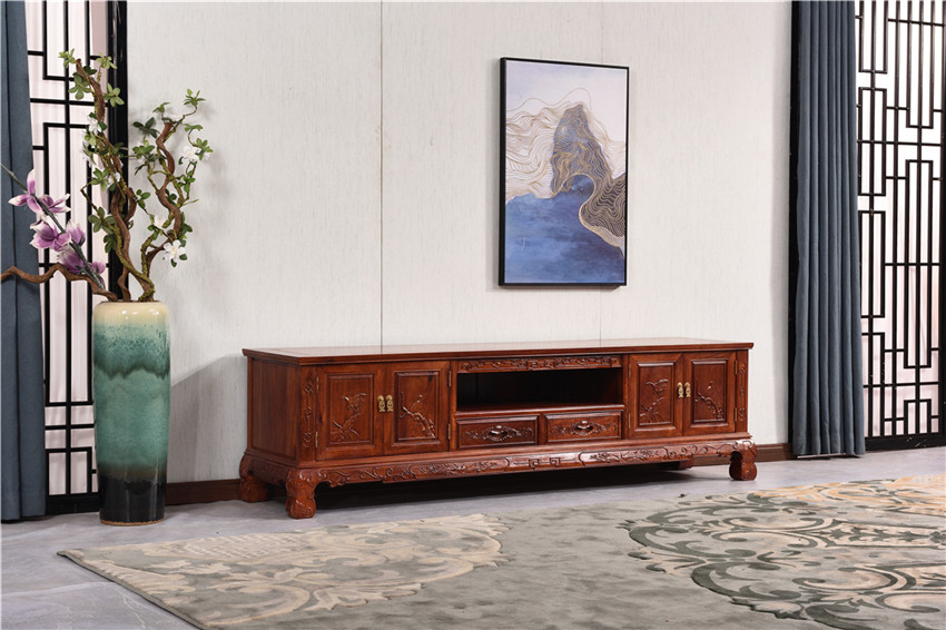 2米檀雕花鳥四門兩抽電視柜